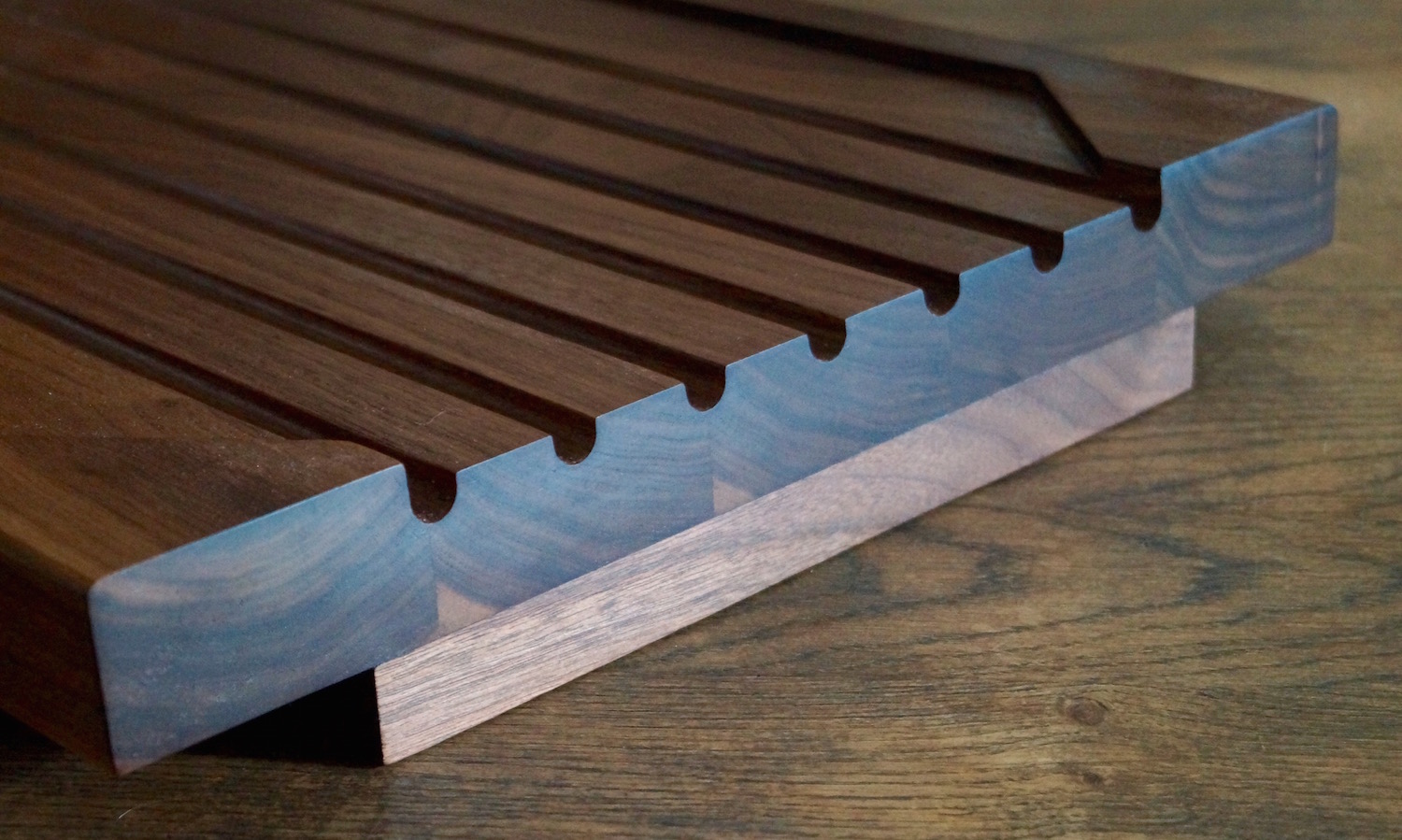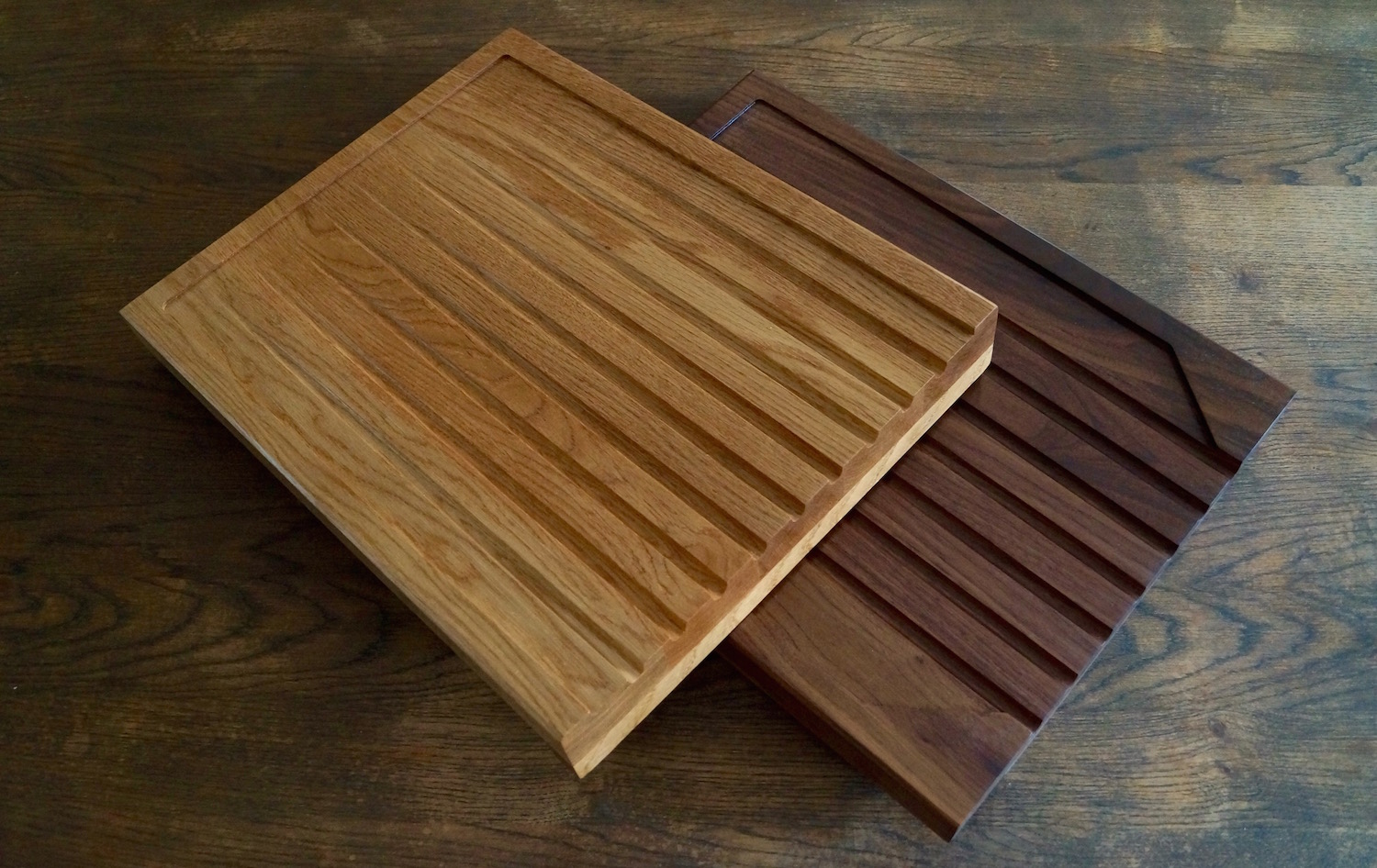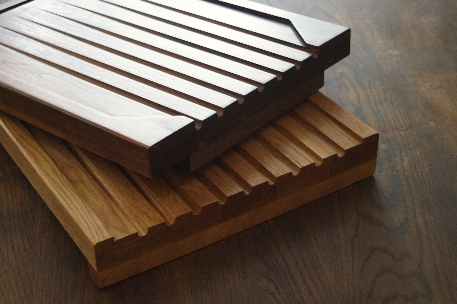 You will be very impressed with the quality of our draining boards. Each one is made to order in our Surrey Hills Workshop from Amish American Hardwoods. Unlike most drainage board designs, ours are made from completely solid joined boards. We then create a sloping surface area and include cascading grooves to help clear the surface of excess water and carry it from your glasses and crockery.