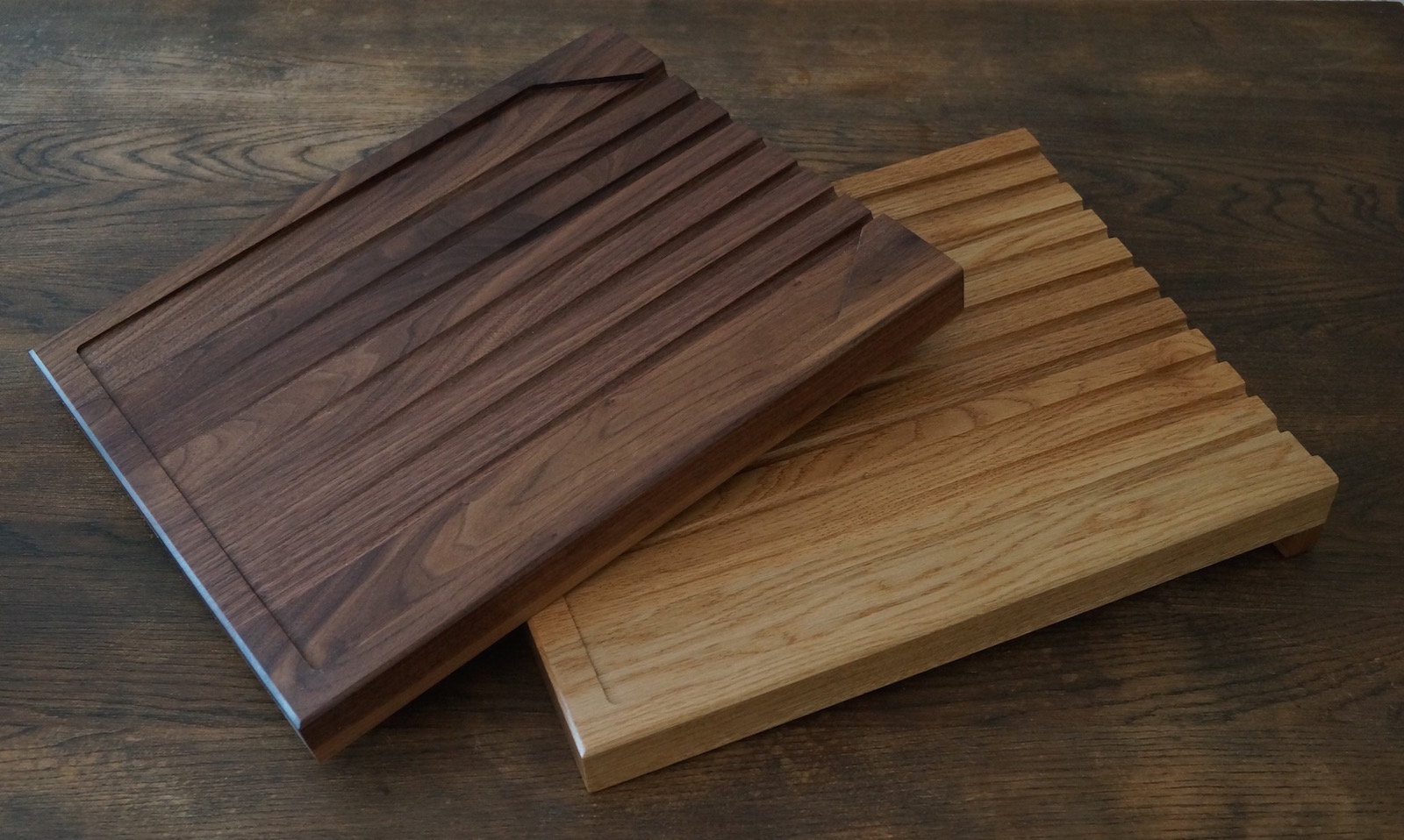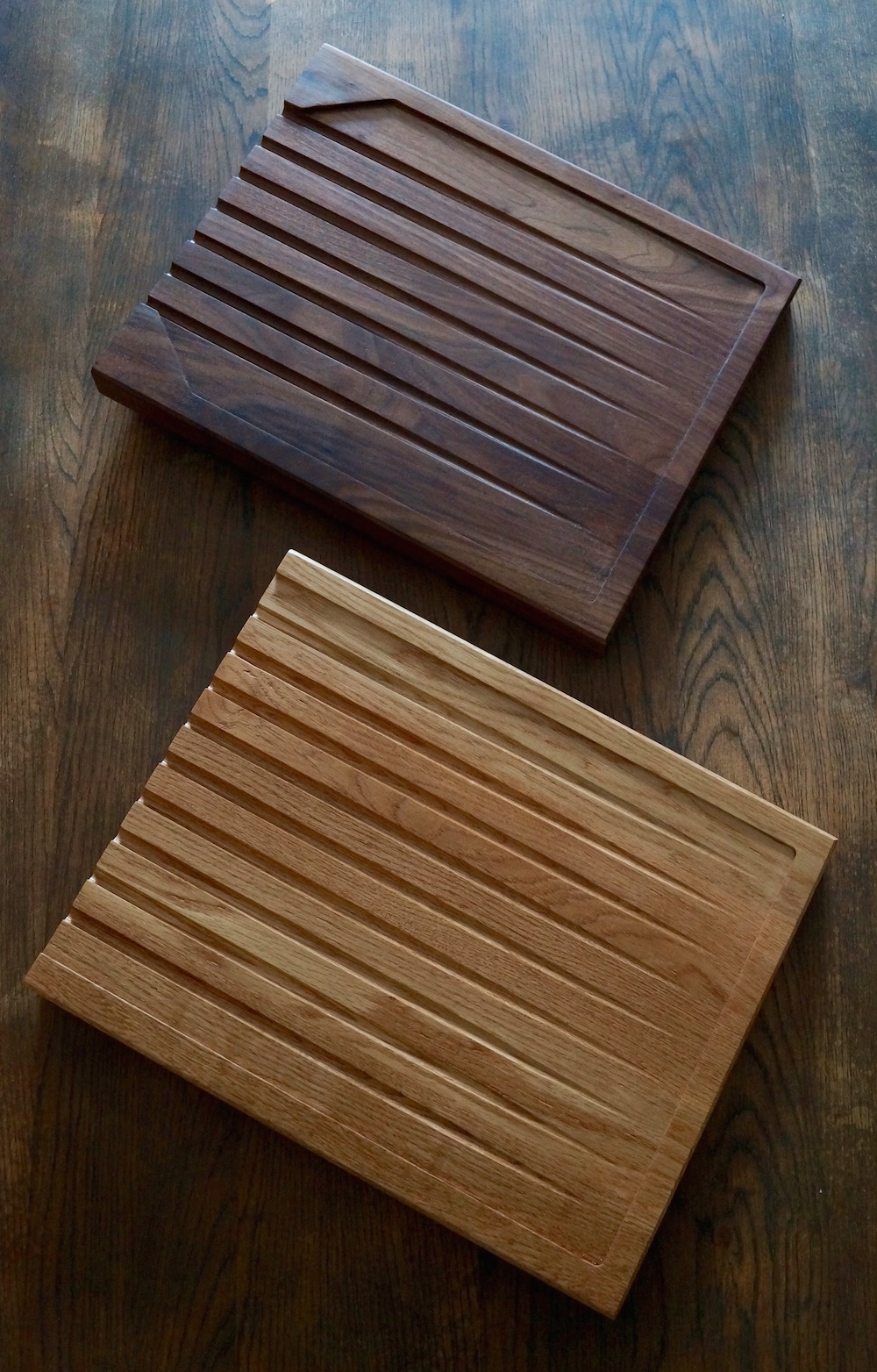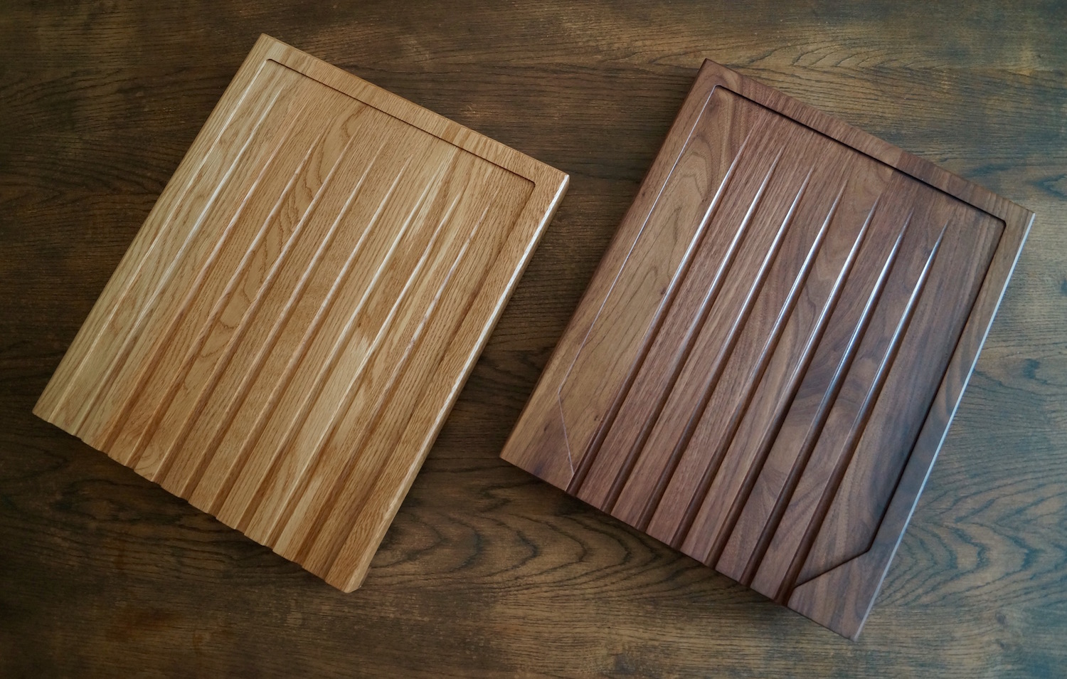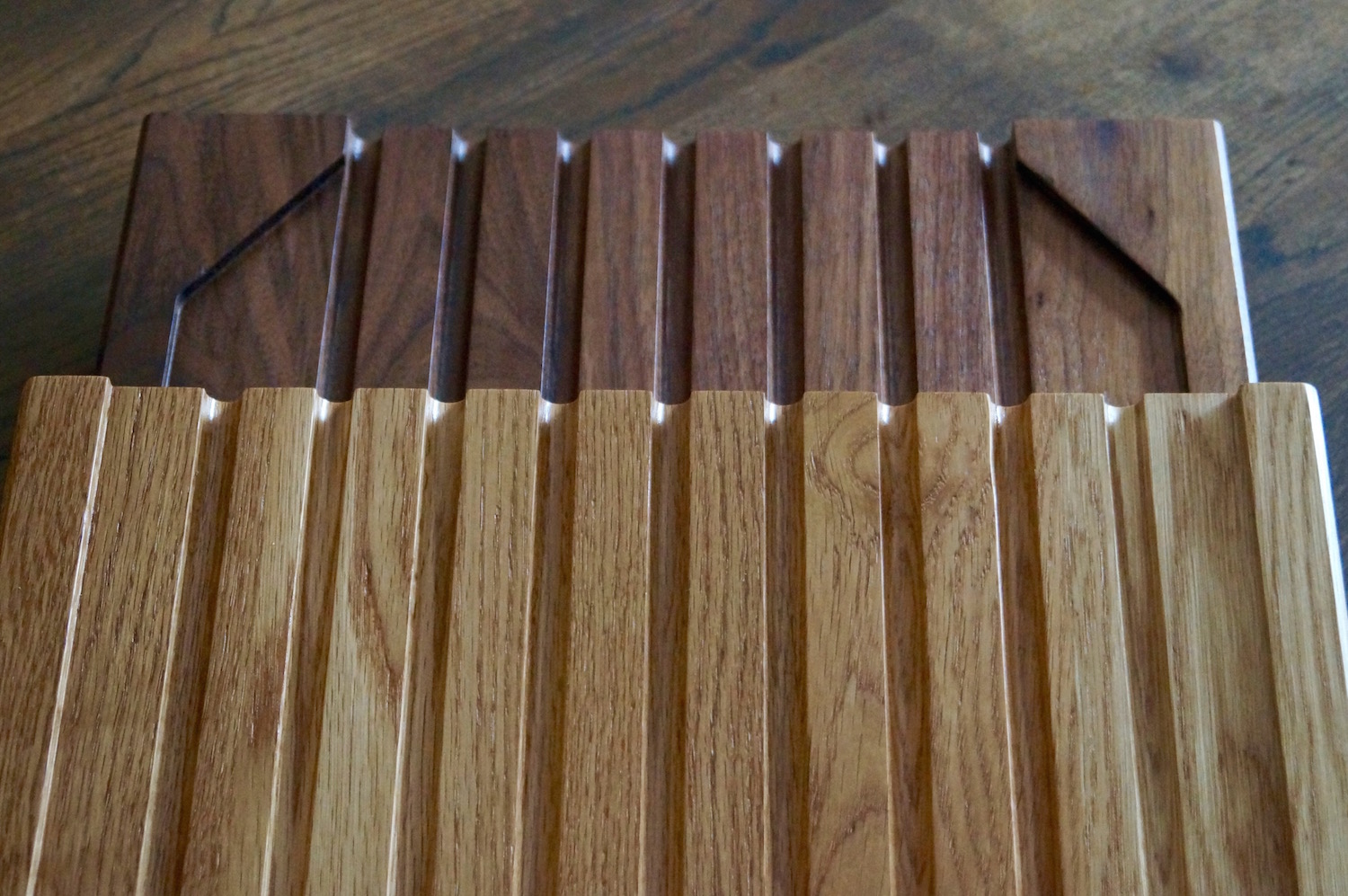 You will be very impressed with the quality of our draining boards. Each one is made to order in our Surrey Hills Workshop from Amish American Hardwoods. Unlike most drainage board designs, ours are made from completely solid joined boards. We then create a sloping surface area and include cascading grooves to help clear the surface of excess water and carry it from your glasses and crockery.