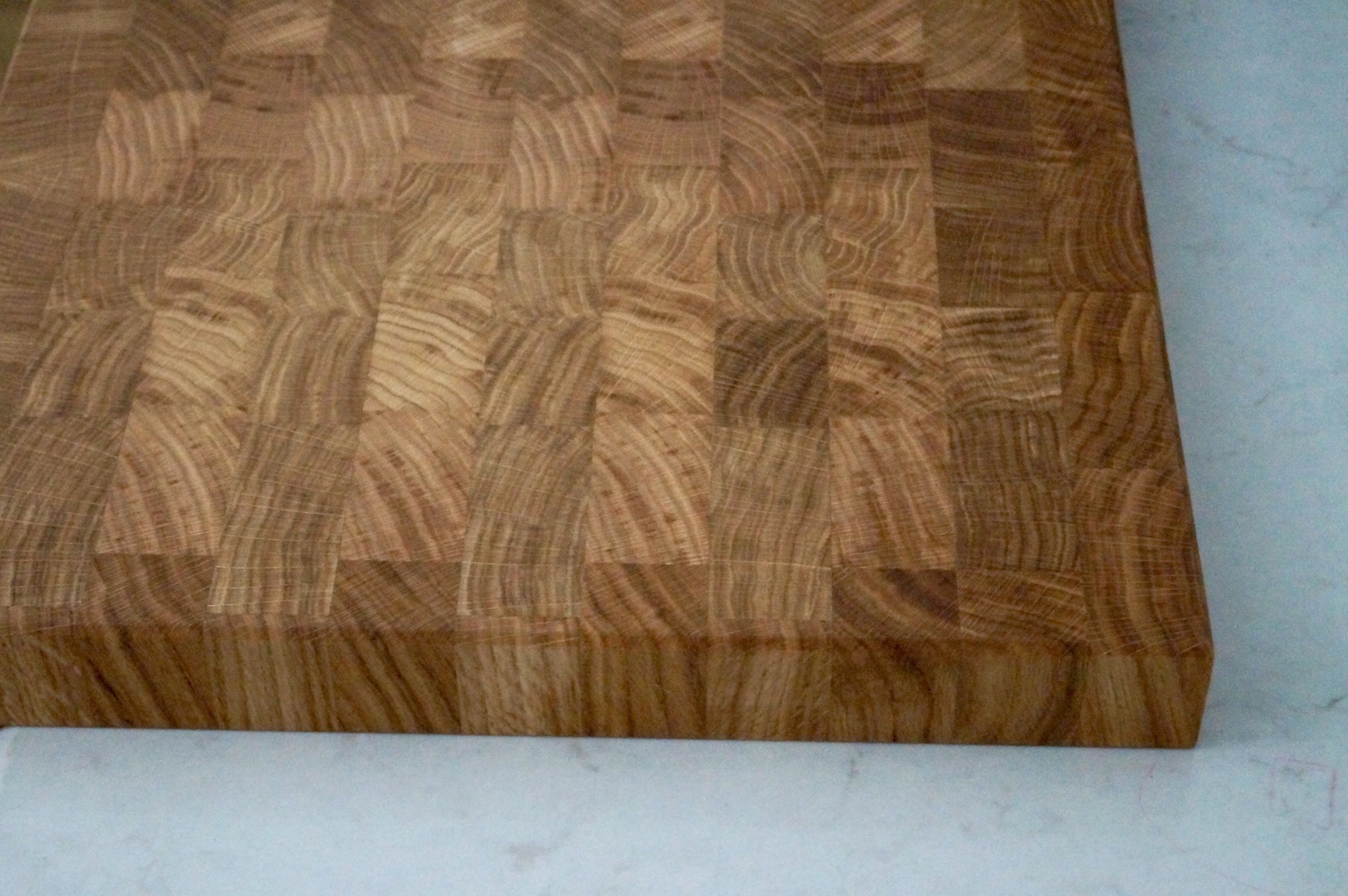 No matter which timber you choose, either the warm honey blonde colour of the oak or the rich dark chocolate colour of the walnut, both timber are very beautiful when set out in the butcher’s block pattern, you really see all the contours of the grain when the timber is turned on its side.