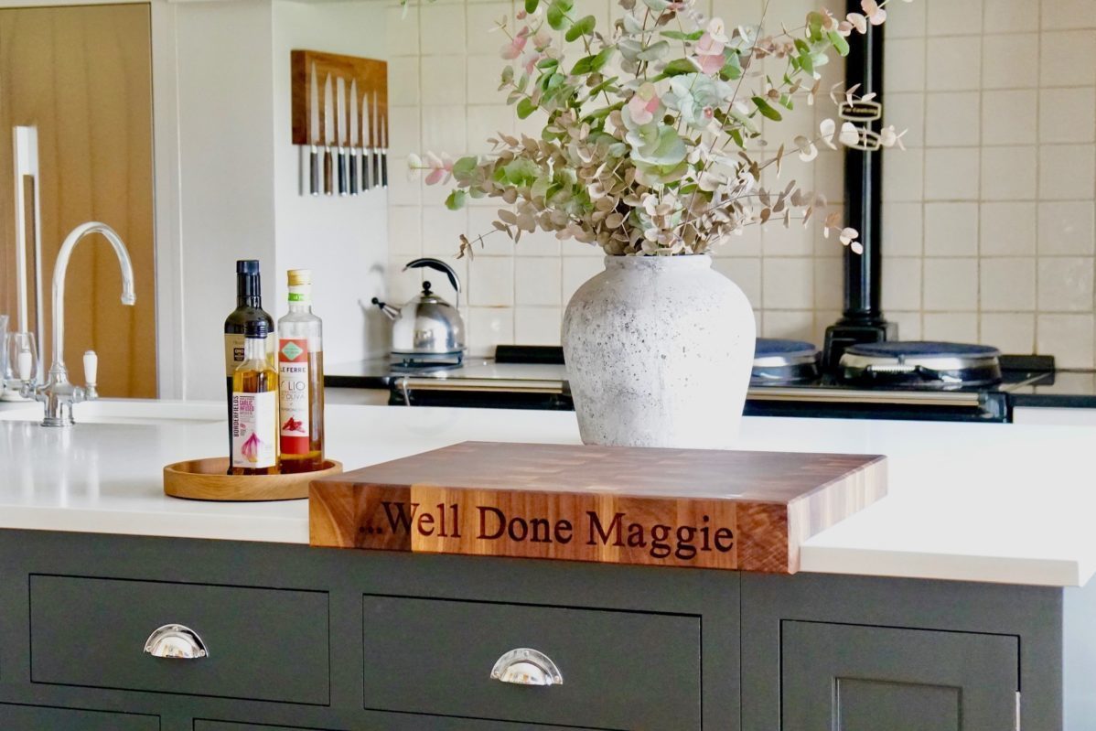 These lipped chopping boards are available blank or with an engraving of your choice using words or lettering. Up to 20 characters on the front face or 40 characters over two lines if you need extra text. Perfect for family names and dates, a special message or a favourite quote. You can also add carved hearts, stars and other engraved motifs like zodiac signs. Take a look at the options available to you – Engraving options.