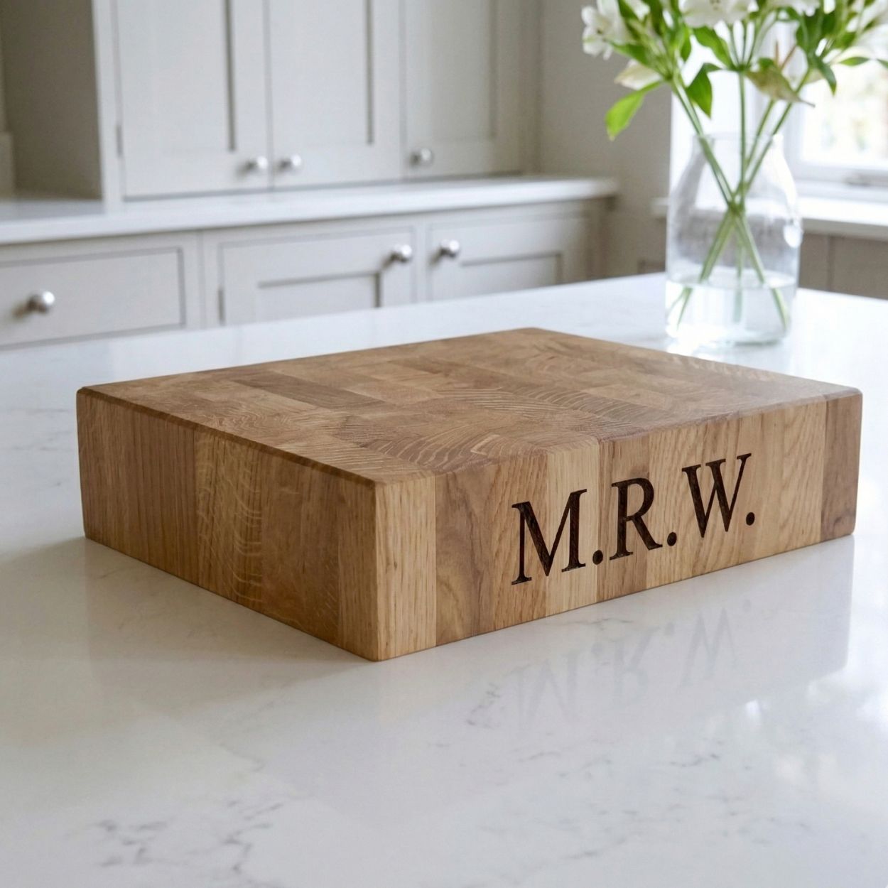 The butcher’s block is the oldest and finest form of chopping board there is. Its construction — end-grain timber laid up in tight formation — creates a surface that is self-healing, extraordinarily durable, and kinder to knife blades than anything else you can put a knife on. Our butcher’s block chopping boards are made in the traditional way: by hand, in our Surrey Hills workshop, from solid English oak and American Black Walnut.