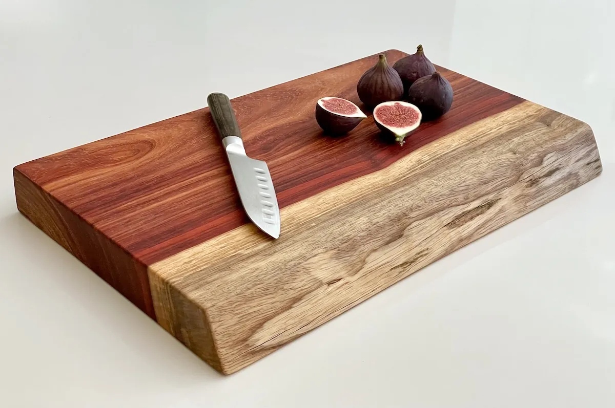 Absolutely stunning board. The live edge and deep red colour of the padauk wood make it a real statement piece.