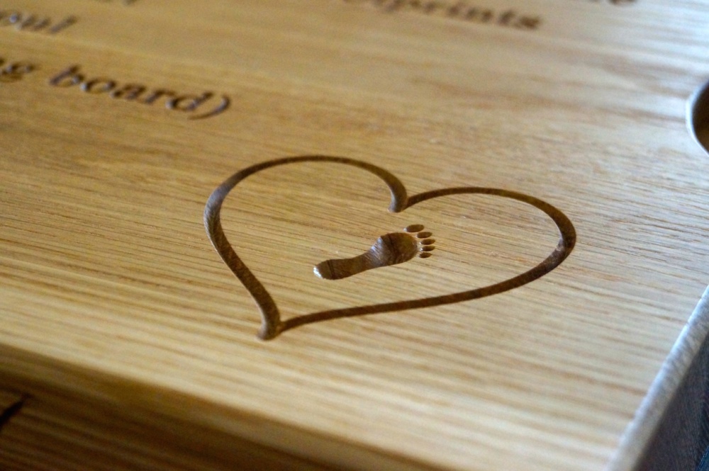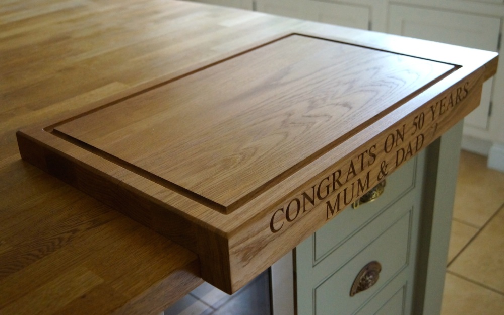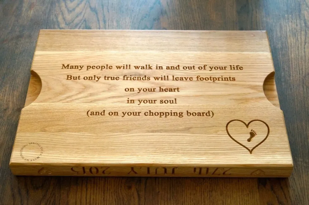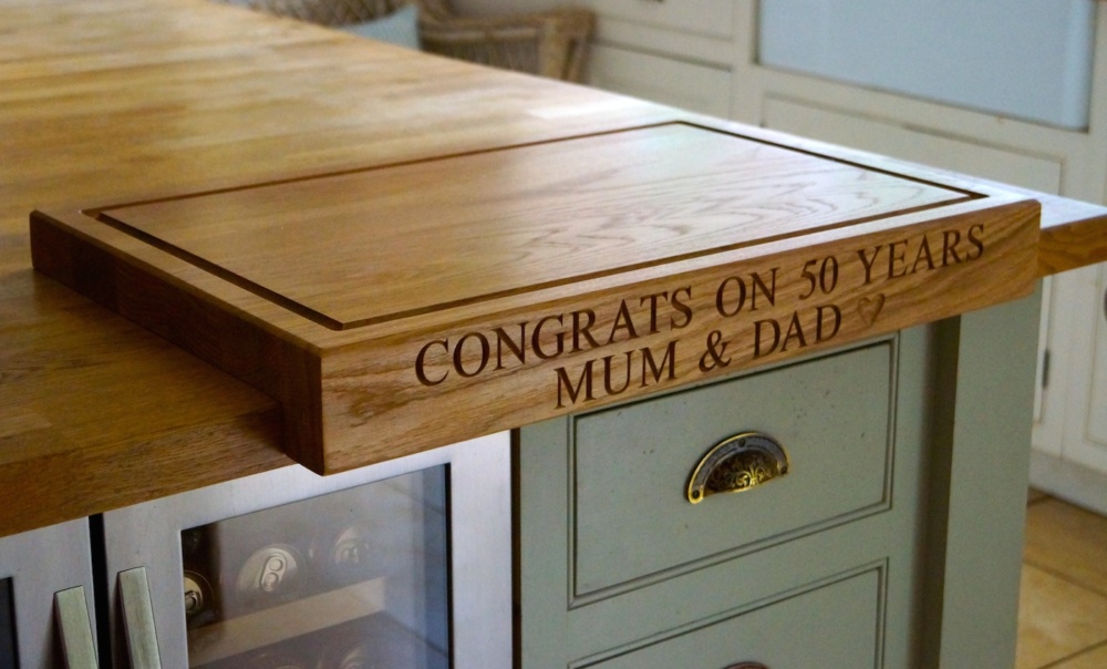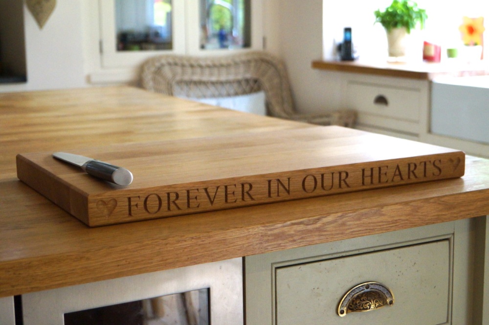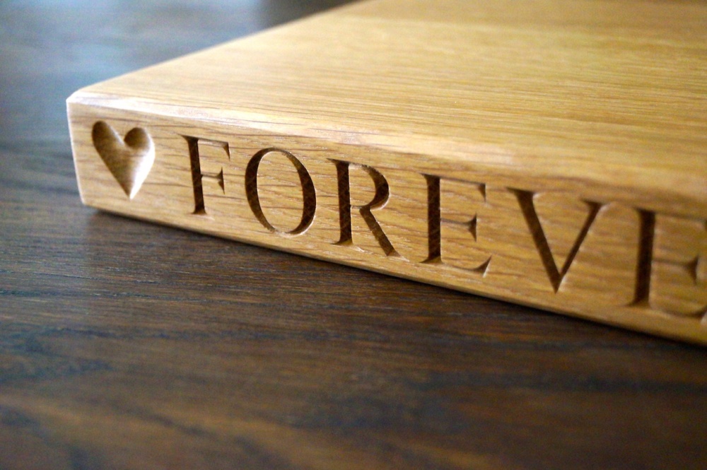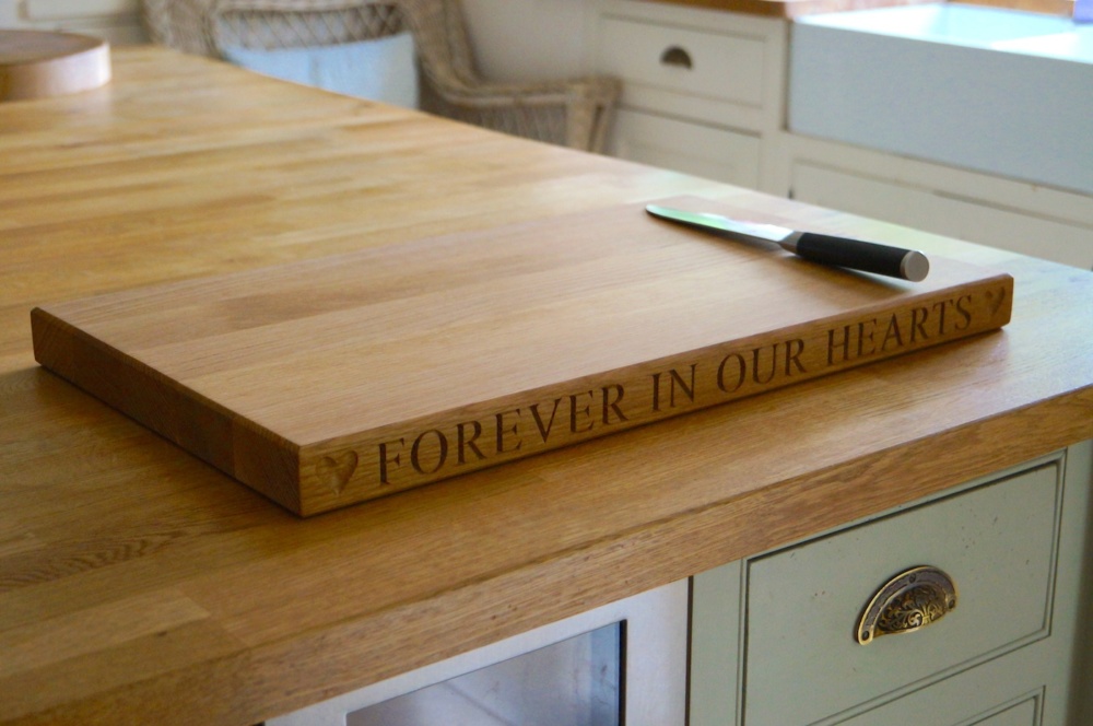 The range of sizes is generous, and each board is made entirely to order. Choose your timber, your dimensions, and your personalisation options. These boards can be engraved along the edge with a name, family name, initials, a date, or a motif from our collection of hand-carved symbols — or they can be left entirely plain. We can also engrave a private message on the underside, hidden from view but always present.