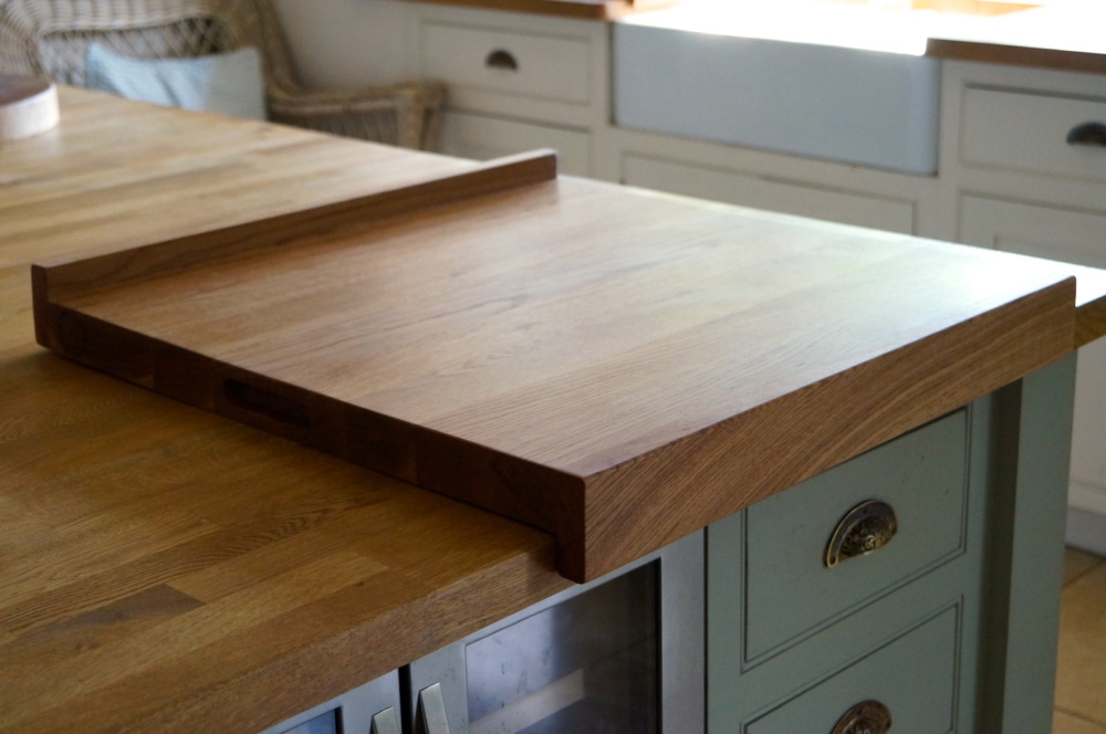 Our large personalised chopping boards are made for those who cook in volume, entertain properly, or simply want the best preparation surface available. Cut from solid English oak or American Black Walnut and finished entirely by hand in our Surrey Hills workshop, these boards are made to measure — sized to fit your kitchen, your worktop, and the way you work.