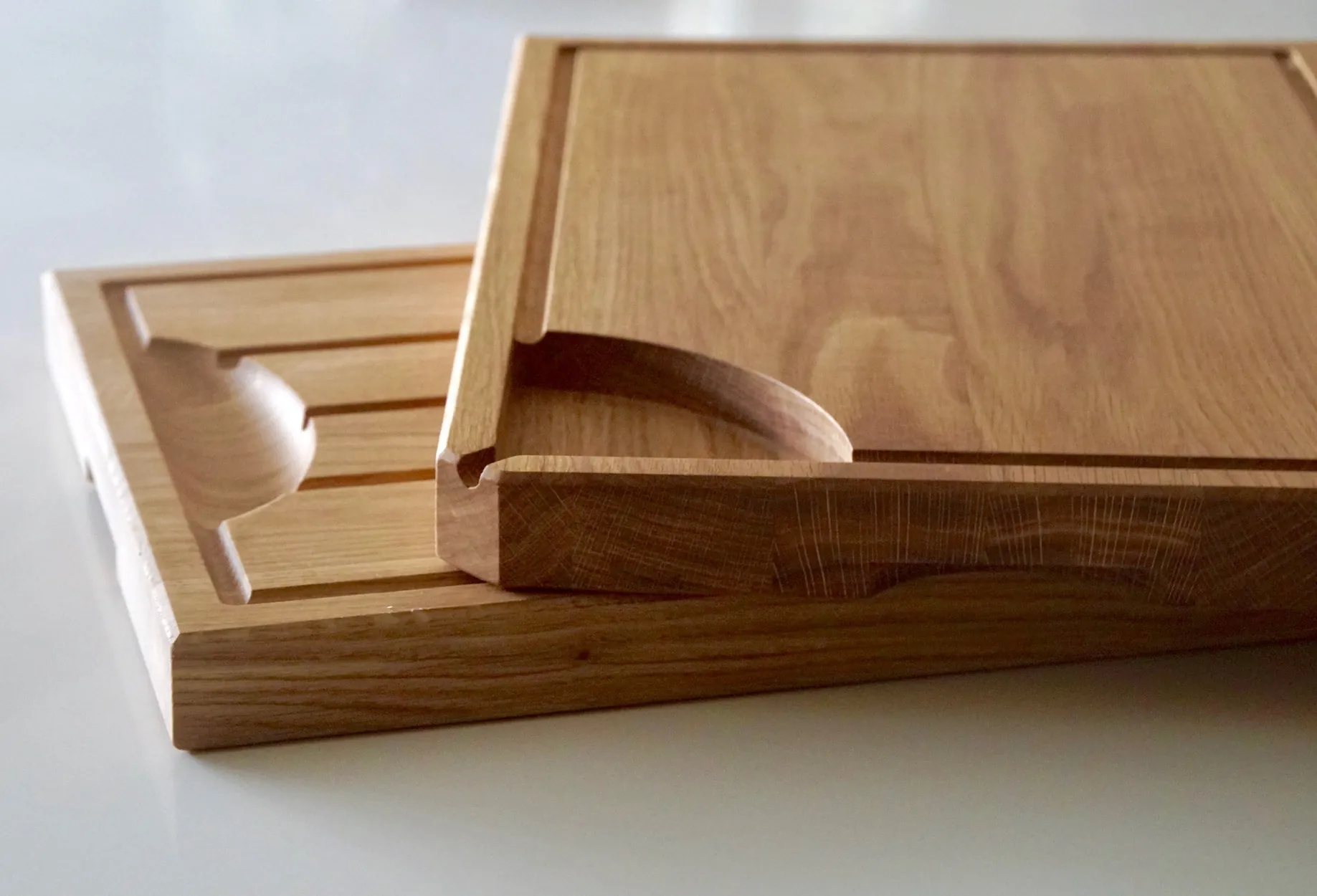 Carving Groove Configuration — Choose from our 2 unique designs. Descending juice grooves and collecting central well – OR – an outer groove with a corner well and spout.