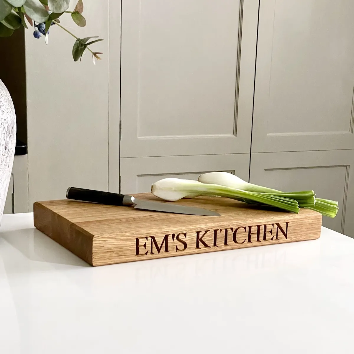 Made from solid English oak and hand-finished in our Surrey Hills workshop, our personalised wooden chopping boards are built to be used. Properly used. Day after day, year after year, without losing an ounce of their character. The weight of the oak, the warmth of the grain, the satisfying solidity when you pick it up — these are not things you find in a chopping board from a kitchen shop.