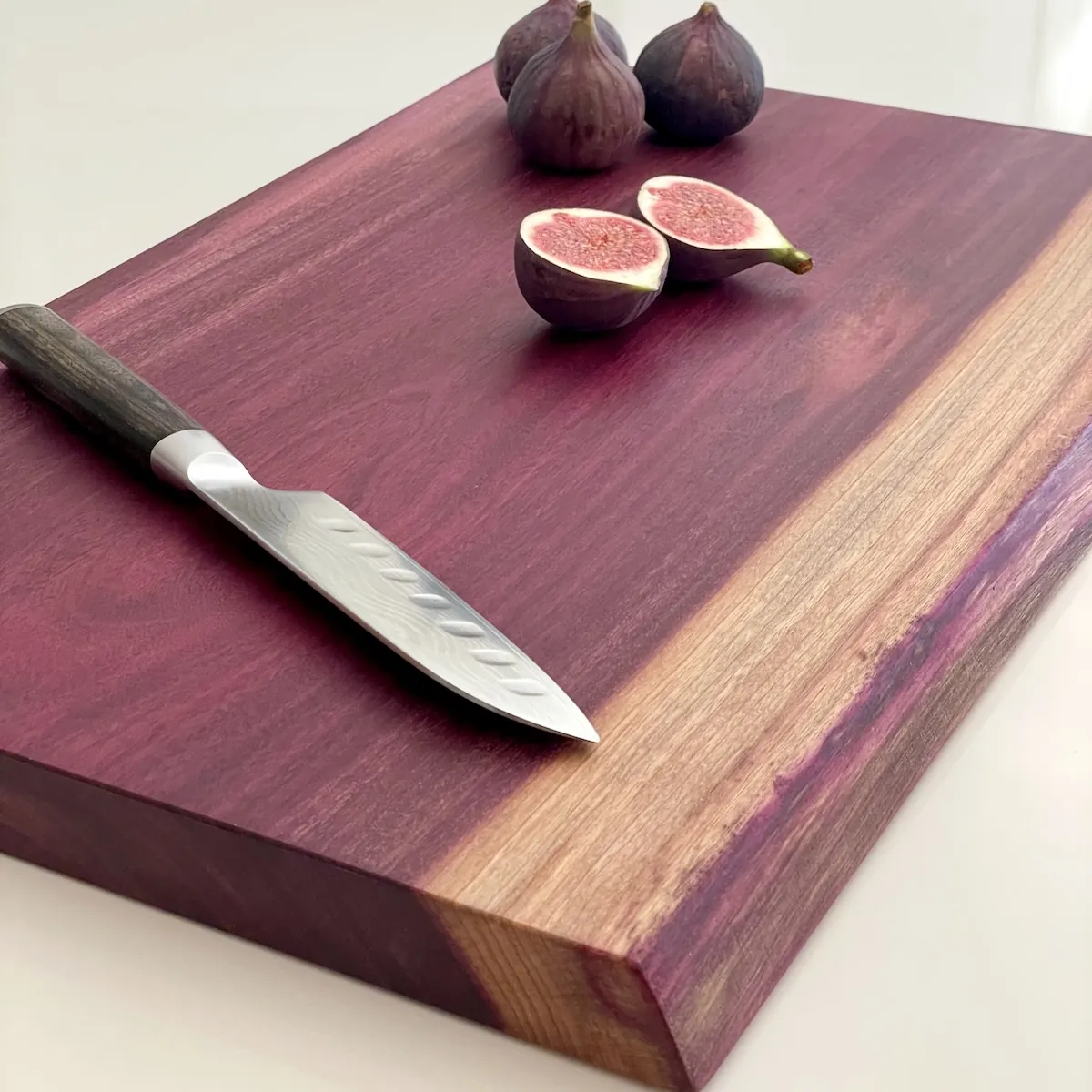 A note on Purpleheart: Like padauk, this timber’s colour will evolve with light exposure, settling over time into a deeper, richer plum tone. After washing, dry the board thoroughly, as some initial colour transfer onto a cloth is normal.
